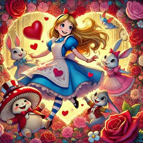 5D Diamond Painting Alice and Rabbit (Velvet Cloth) Fairy Dust Drills Full Round&Square Wall DIY Art Crafts Mosaic Picture Kit Home Decoration Gift