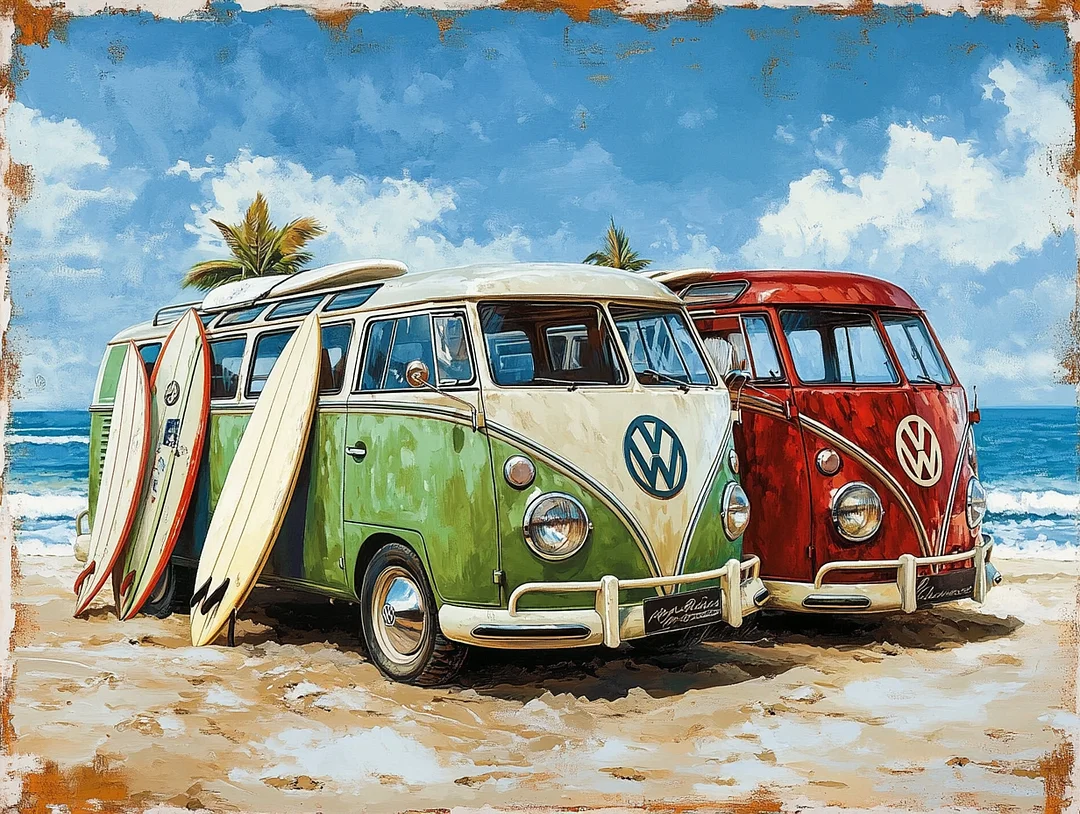 5D Diamond Painting Beach Bus (Velvet Cloth) Fairy Dust Drills Full Round&Square Wall DIY Art Crafts Mosaic Picture Kit Home Decoration Gift