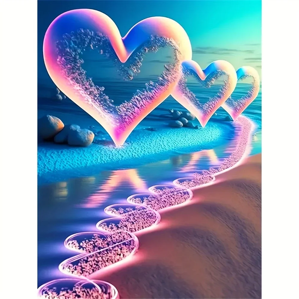 5D Diamond Painting Beach Love Landscape (Velvet Cloth) Fairy Dust Drills Full Round&Square Wall DIY Art Crafts Mosaic Picture Kit Home Decoration Gift
