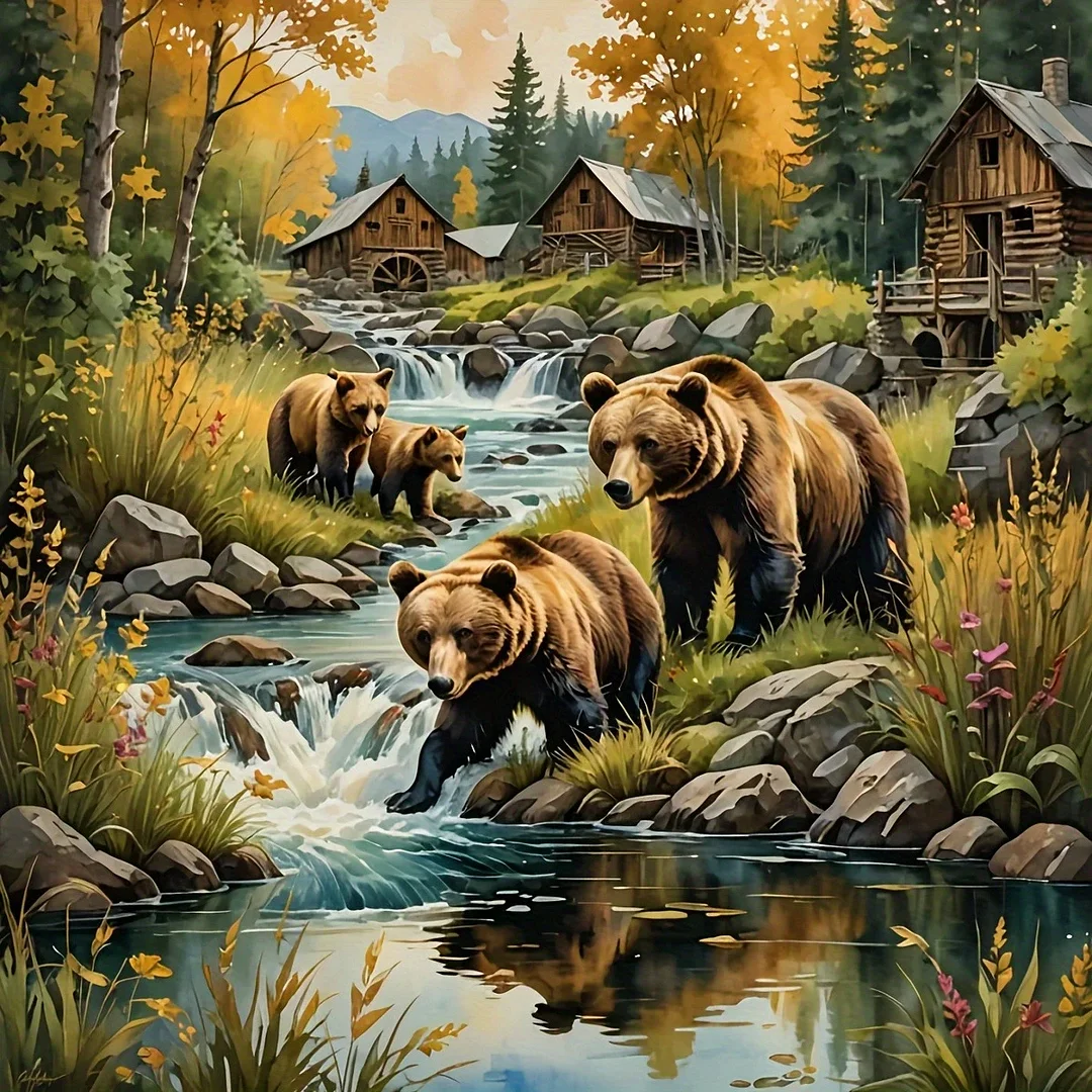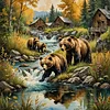 5D Diamond Painting Bear House Scenery (Velvet Cloth) Fairy Dust Drills Full Round&Square Wall DIY Art Crafts Mosaic Picture Kit Home Decoration Gift
