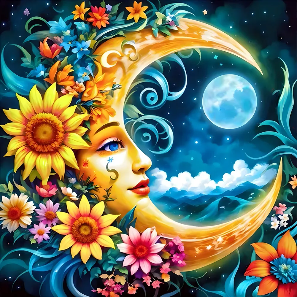 5D Diamond Painting Bent Moon Flower (Velvet Cloth) Fairy Dust Drills Full Round&Square Wall DIY Art Crafts Mosaic Picture Kit Home Decoration Gift