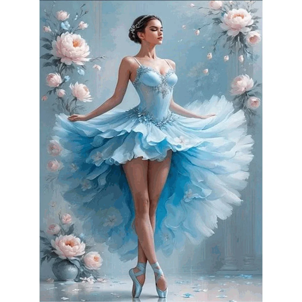 5D Diamond Painting Blue Dancer (Velvet Cloth) Fairy Dust Drills Full Round&Square Wall DIY Art Crafts Mosaic Picture Kit Home Decoration Gift