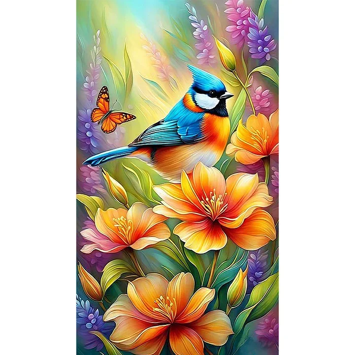 5D Diamond Painting Blue Finch (Velvet Cloth) AB Drill Full Round&Square Wall Rhinestone DIY Art Crafts Mosaic Picture Kit Home Decoration Gift