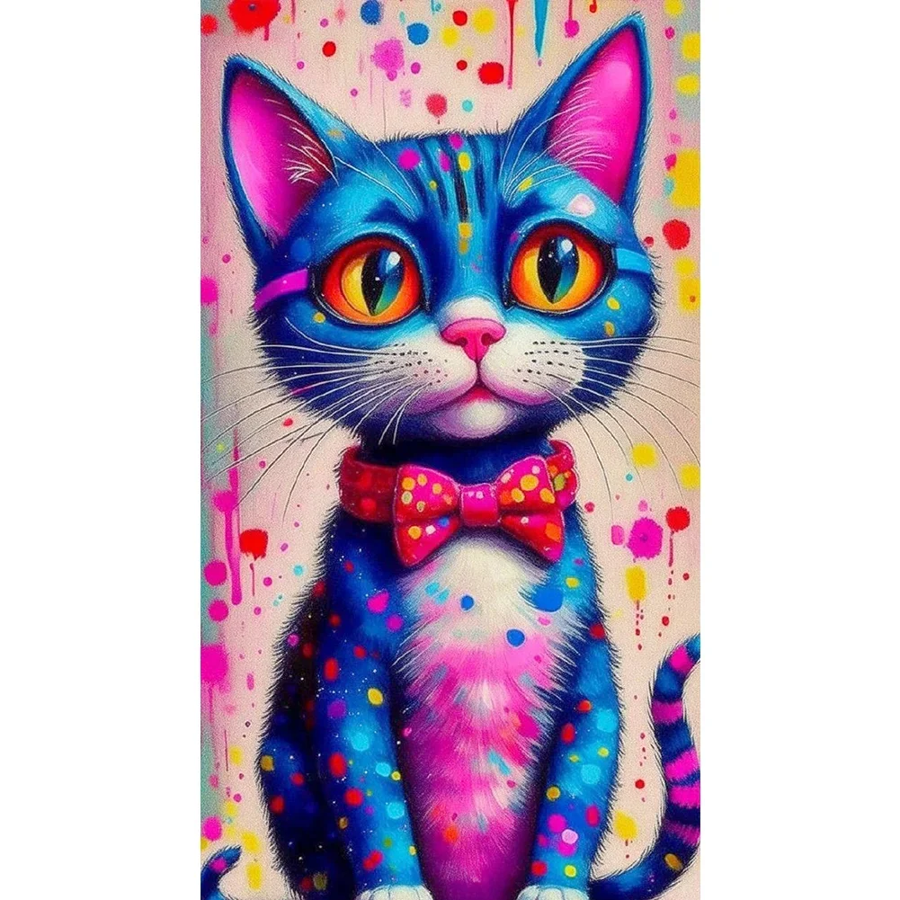 5D Diamond Painting Colorful Cat (Velvet Cloth) AB Drill Full Round&Square Wall Rhinestone DIY Art Crafts Mosaic Picture Kit Home Decoration Gift
