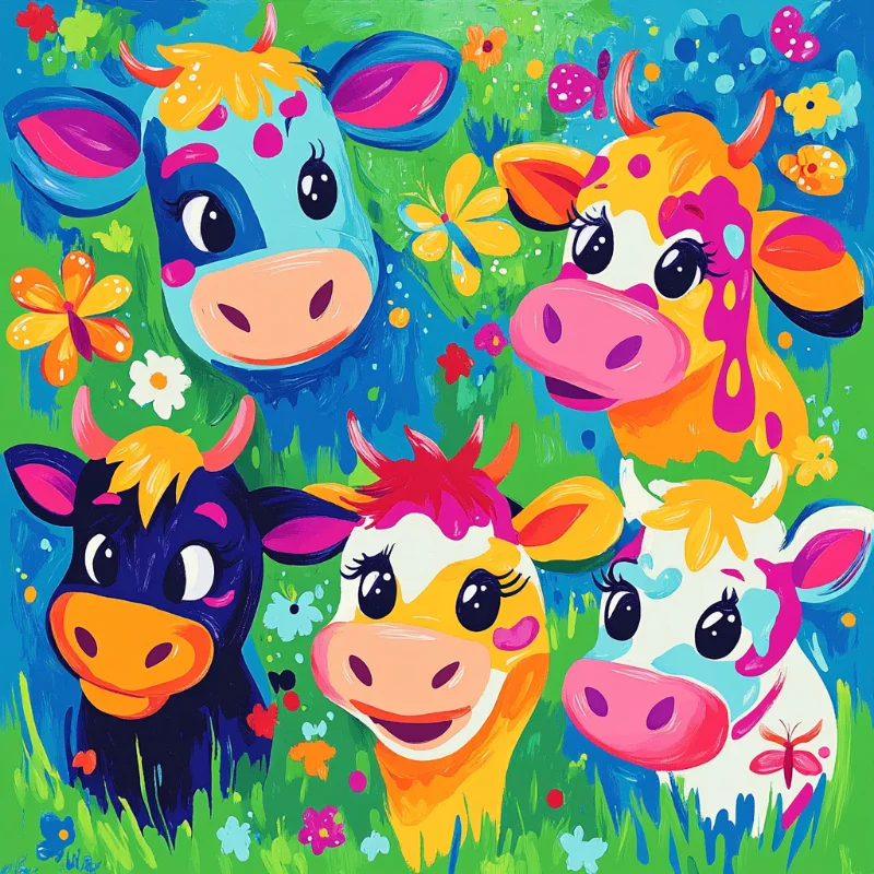 5D Diamond Painting Colorful Cow (Velvet Cloth) Fairy Dust Drills Full Round&Square Wall DIY Art Crafts Mosaic Picture Kit Home Decoration Gift