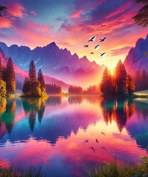 Diamond Painting Colorful Lake Tree Landscape Full Round&Square Drill Wall Rhinestone DIY Art Crafts Mosaic Picture Kit Home Decoration Gift