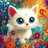 5D Diamond Painting Cute Big Eye White Cat (Velvet Cloth) Fairy Dust Drills Full Round&Square Wall DIY Art Crafts Mosaic Picture Kit Home Decoration Gift