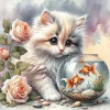5D Diamond Painting Cute Cat Watching Fish Full Round&Square Drill Wall Rhinestone DIY Art Crafts Mosaic Picture Kit Home Decoration Gift