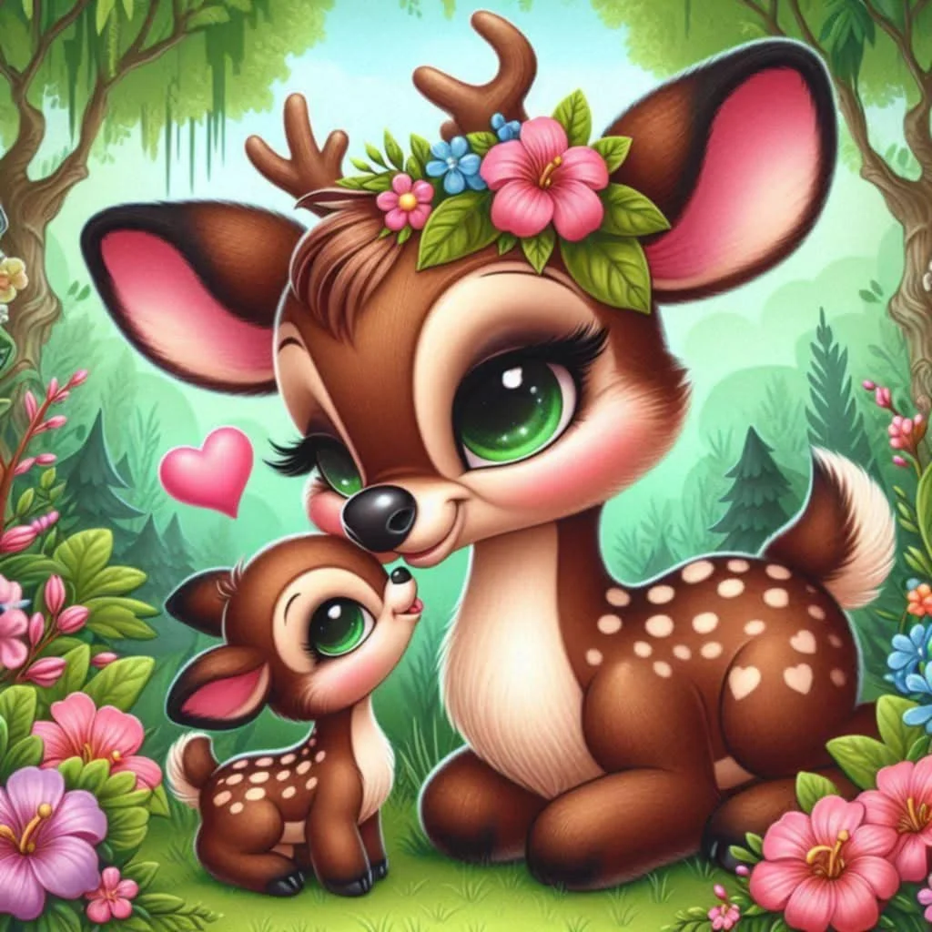 5D Diamond Painting Cute Deer and Cub Full Round&Square Drill Wall Rhinestone DIY Art Crafts Mosaic Picture Kit Home Decoration Gift