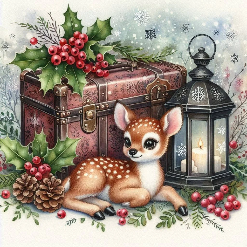 5D Diamond Painting Cute Deer (Velvet Cloth) AB Drill Full Round&Square Wall Rhinestone DIY Art Crafts Mosaic Picture Kit Home Decoration Gift