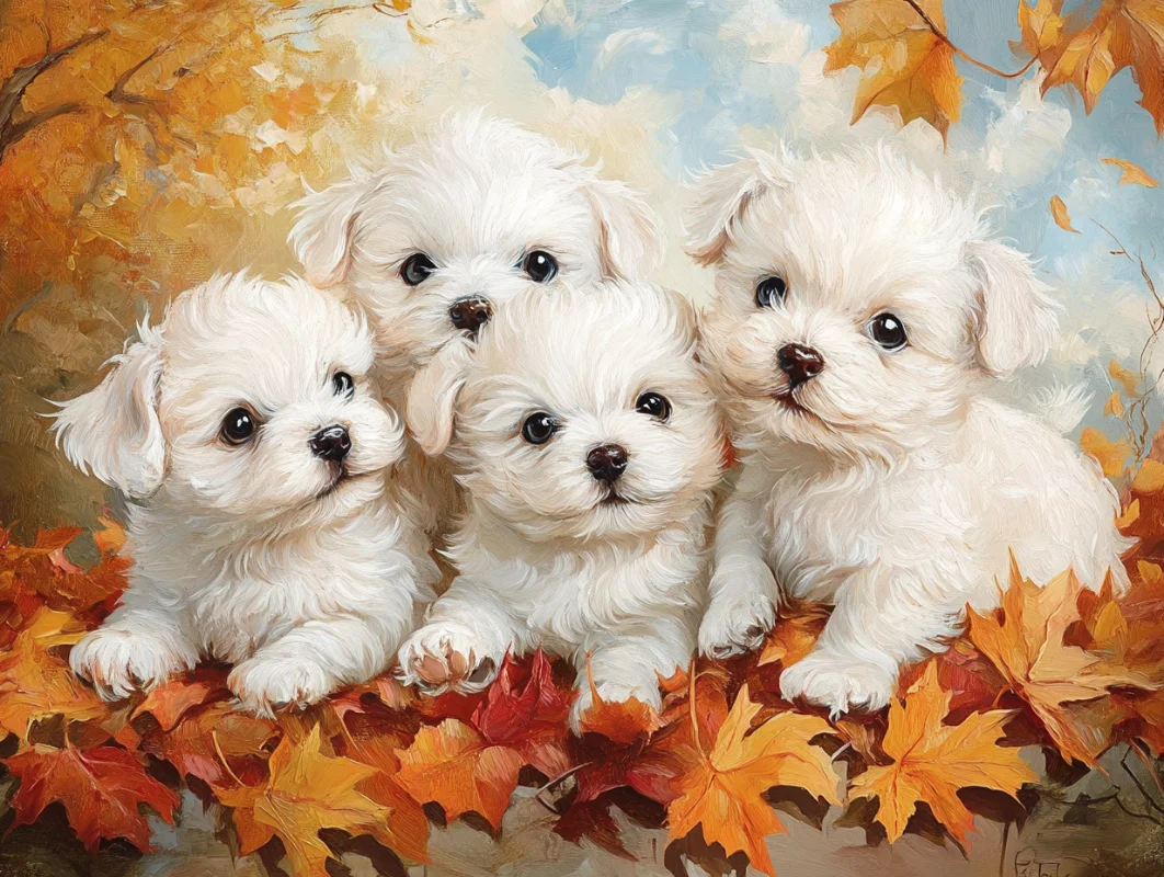 5D Diamond Painting Cute White Dog (Velvet Cloth) AB Drill Full Round&Square Wall Rhinestone DIY Art Crafts Mosaic Picture Kit Home Decoration Gift