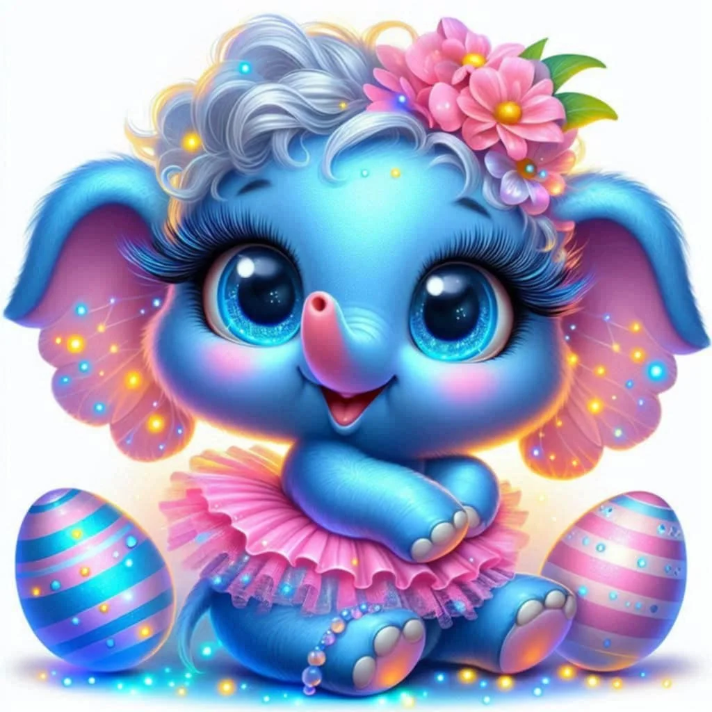 5D Diamond Painting Easter Egg Blue Cute Elephant Full Round&Square Drill Wall Rhinestone DIY Art Crafts Mosaic Picture Kit Home Decoration Gift