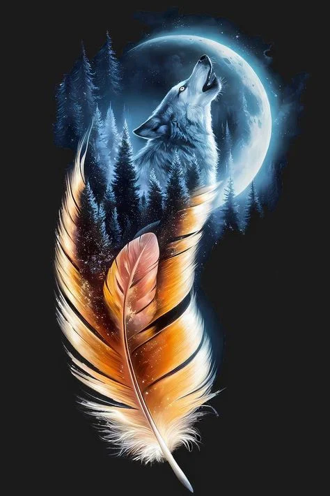 5D Diamond Painting Feather Wolf Howl (Velvet Cloth) AB Drill Full Round&Square Wall Rhinestone DIY Art Crafts Mosaic Picture Kit Home Decoration Gift