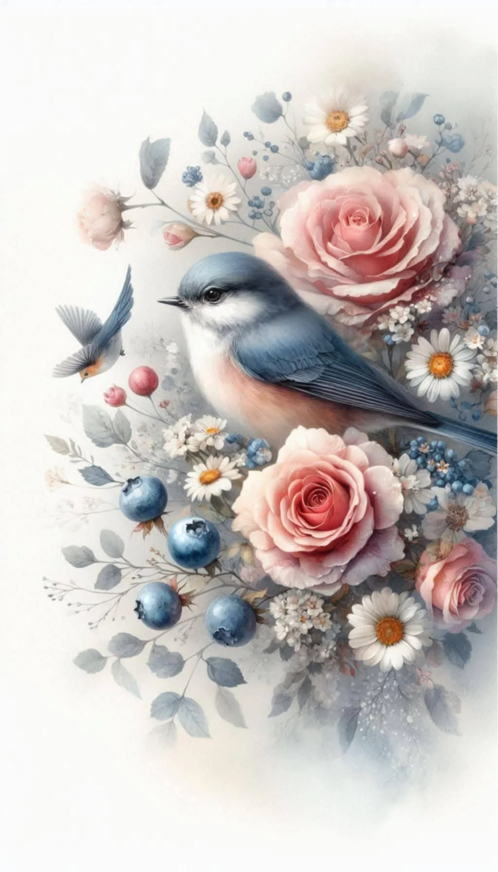 5D Diamond Painting Flower Bird (Velvet Cloth) AB Drill Full Round&Square Wall Rhinestone DIY Art Crafts Mosaic Picture Kit Home Decoration Gift