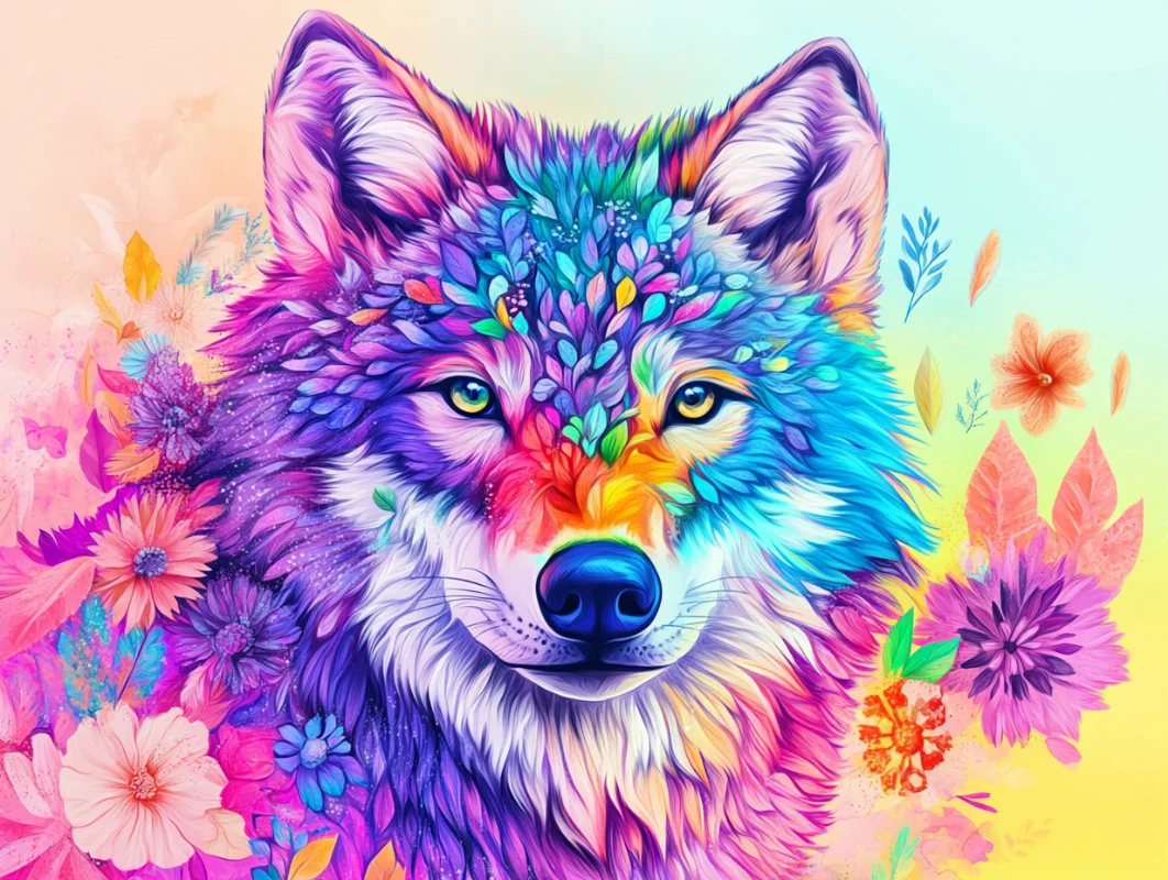 5D Diamond Painting Flower Wolf (Velvet Cloth) Fairy Dust Drills Full Round&Square Wall DIY Art Crafts Mosaic Picture Kit Home Decoration Gift