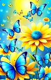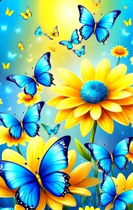 5D Diamond Painting Flowers Blue Butterfly (Velvet Cloth) AB Drill Full Round&Square Wall Rhinestone DIY Art Crafts Mosaic Picture Kit Home Decoration Gift