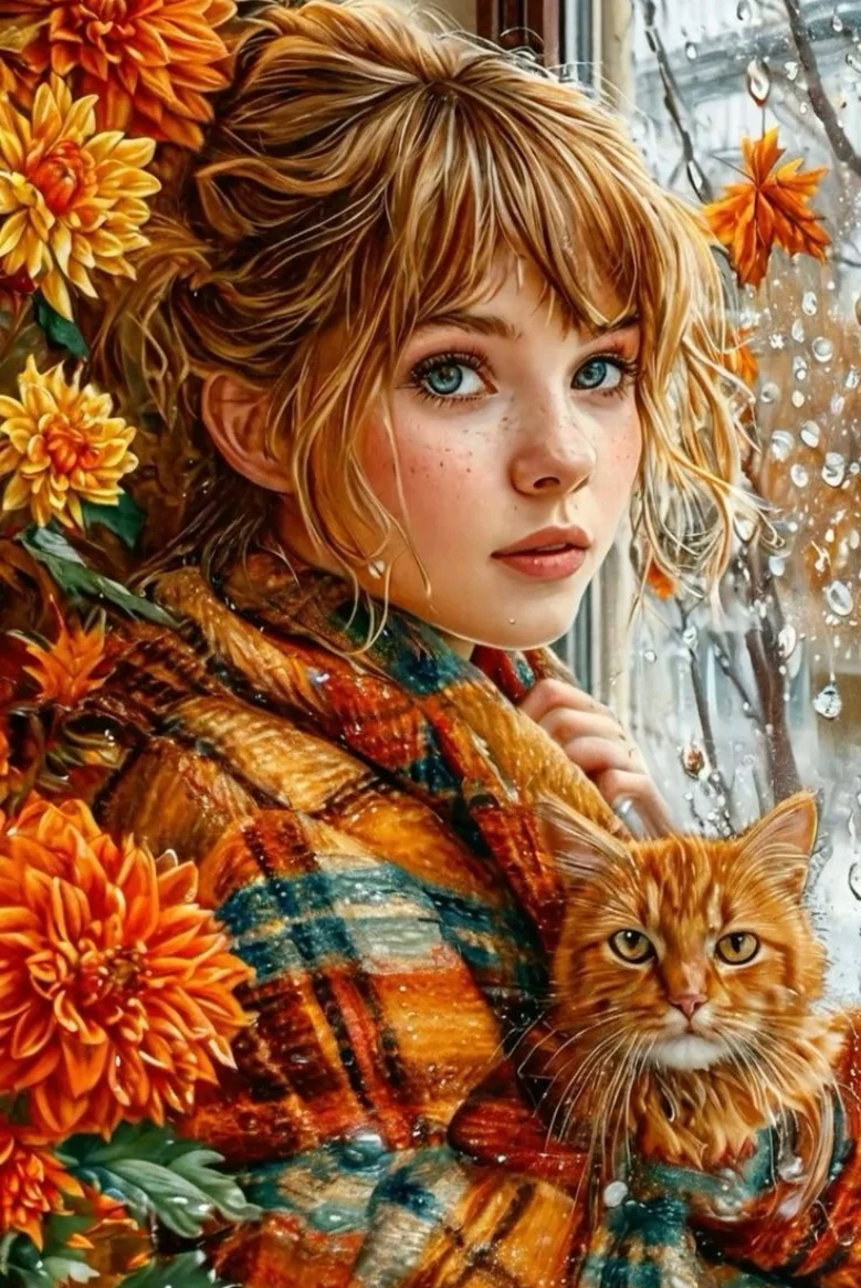 5D Diamond Painting Girl and Cat Full Round&Square Drill Wall Rhinestone DIY Art Crafts Mosaic Picture Kit Home Decoration Gift