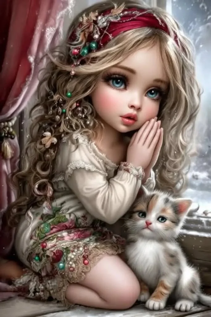 5D Diamond Painting Girl and Cat (Velvet Cloth) Fairy Dust Drills Full Round&Square Wall DIY Art Crafts Mosaic Picture Kit Home Decoration Gift