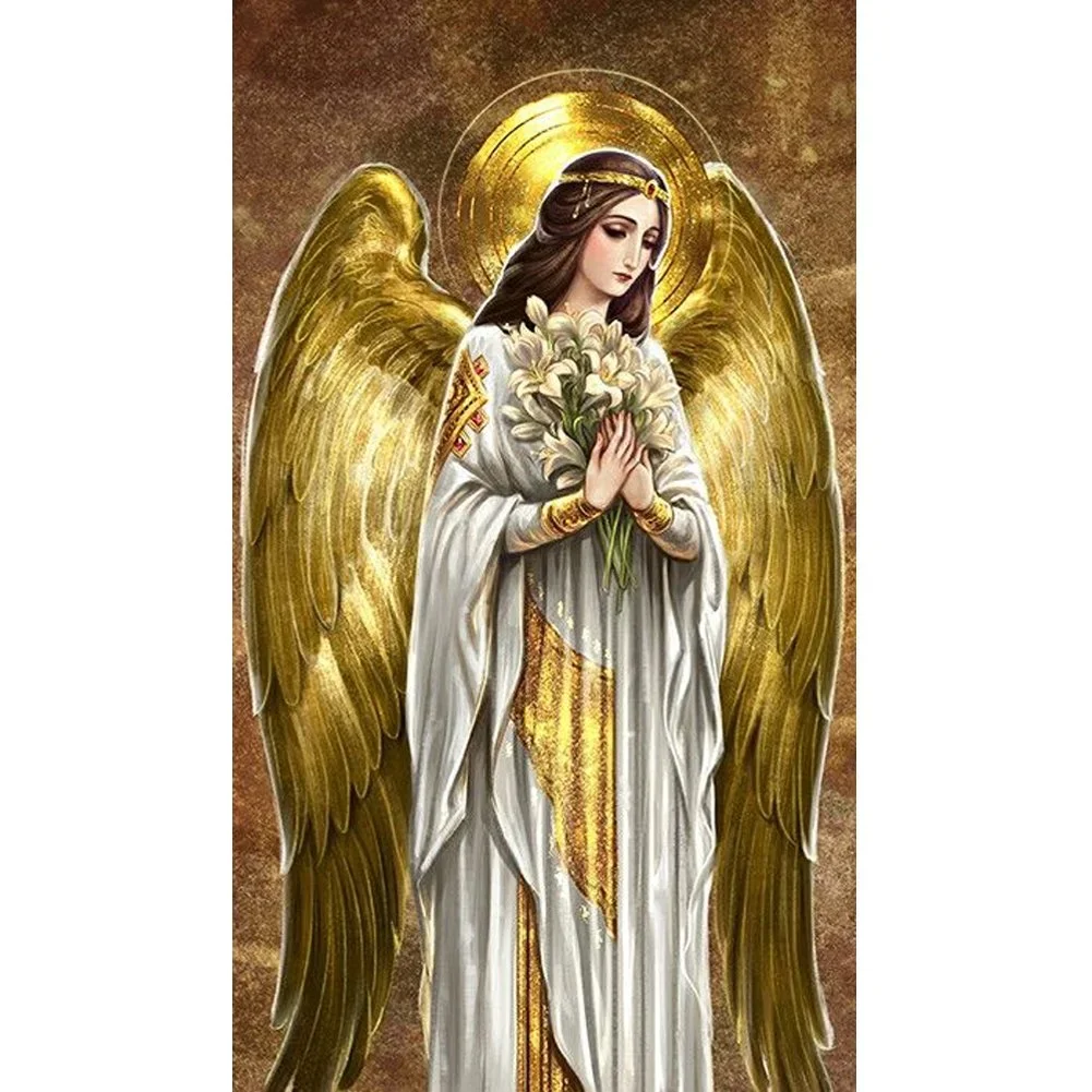 5D Diamond Painting Golden Angel (Velvet Cloth) AB Drill Full Round&Square Wall Rhinestone DIY Art Crafts Mosaic Picture Kit Home Decoration Gift