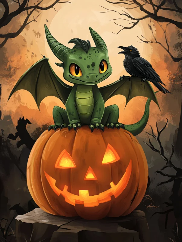 5D Diamond Painting Halloween Dragon Pumpkin (Velvet Cloth) Fairy Dust Drills Full Round&Square Wall DIY Art Crafts Mosaic Picture Kit Home Decoration Gift