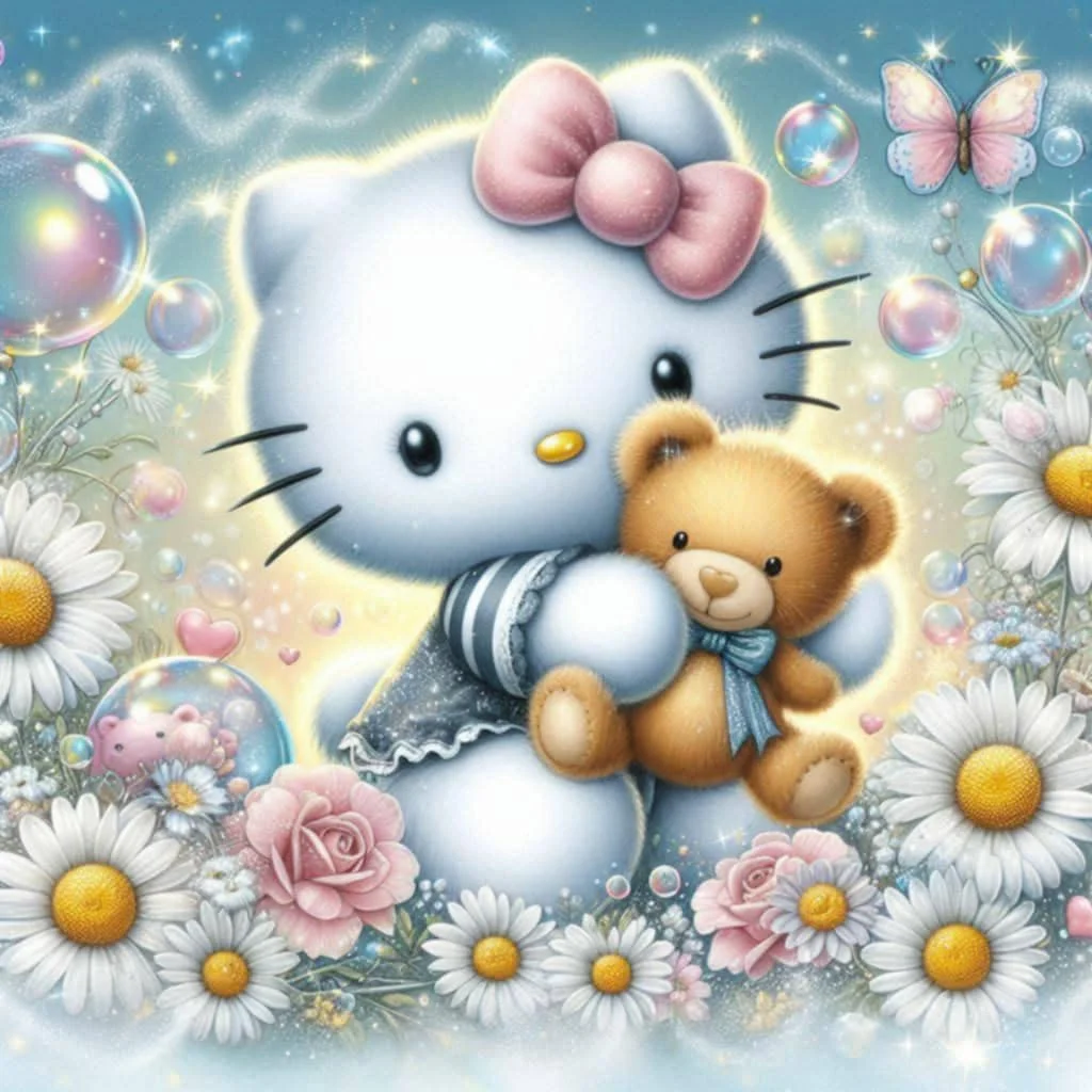 5D Diamond Painting Hello Kitty Cat (Velvet Cloth) Fairy Dust Drills Full Round&Square Wall DIY Art Crafts Mosaic Picture Kit Home Decoration Gift