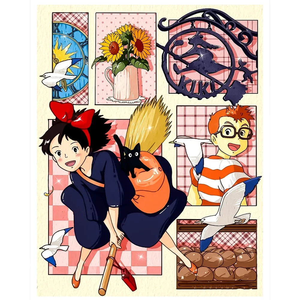 5D Diamond Painting Kiki'S Delivery Service (Velvet Cloth) AB Drill Full Round&Square Wall Rhinestone DIY Art Crafts Mosaic Picture Kit Home Decoration Gift