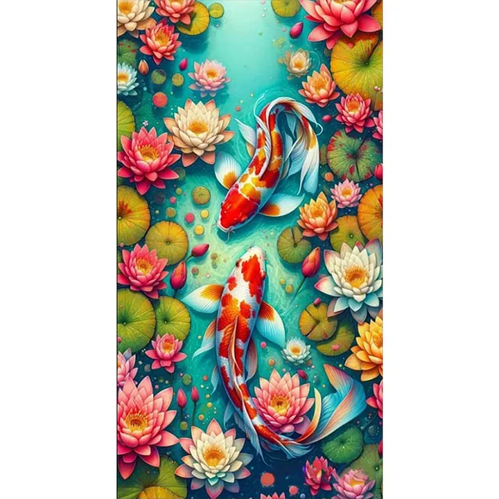 5D Diamond Painting Koi In The Pond (Velvet Cloth) AB Drill Full Round&Square Wall Rhinestone DIY Art Crafts Mosaic Picture Kit Home Decoration Gift