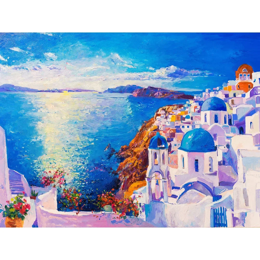 5D Diamond Painting Located In Santorin (Velvet Cloth) AB Drill Full Round&Square Wall Rhinestone DIY Art Crafts Mosaic Picture Kit Home Decoration Gift