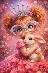 5D Diamond Painting Macarena Diamod Art -Girl With Red Hair and Rabbit (Velvet Cloth) Fairy Dust Drills Full Round&Square Wall DIY Art Crafts Mosaic Picture Kit Home Decoration Gift