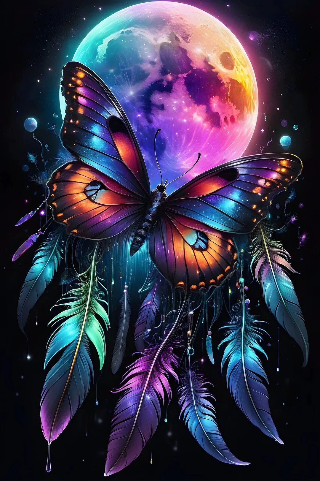 5D Diamond Painting Moon Butterfly (Velvet Cloth) AB Drill Full Round&Square Wall Rhinestone DIY Art Crafts Mosaic Picture Kit Home Decoration Gift
