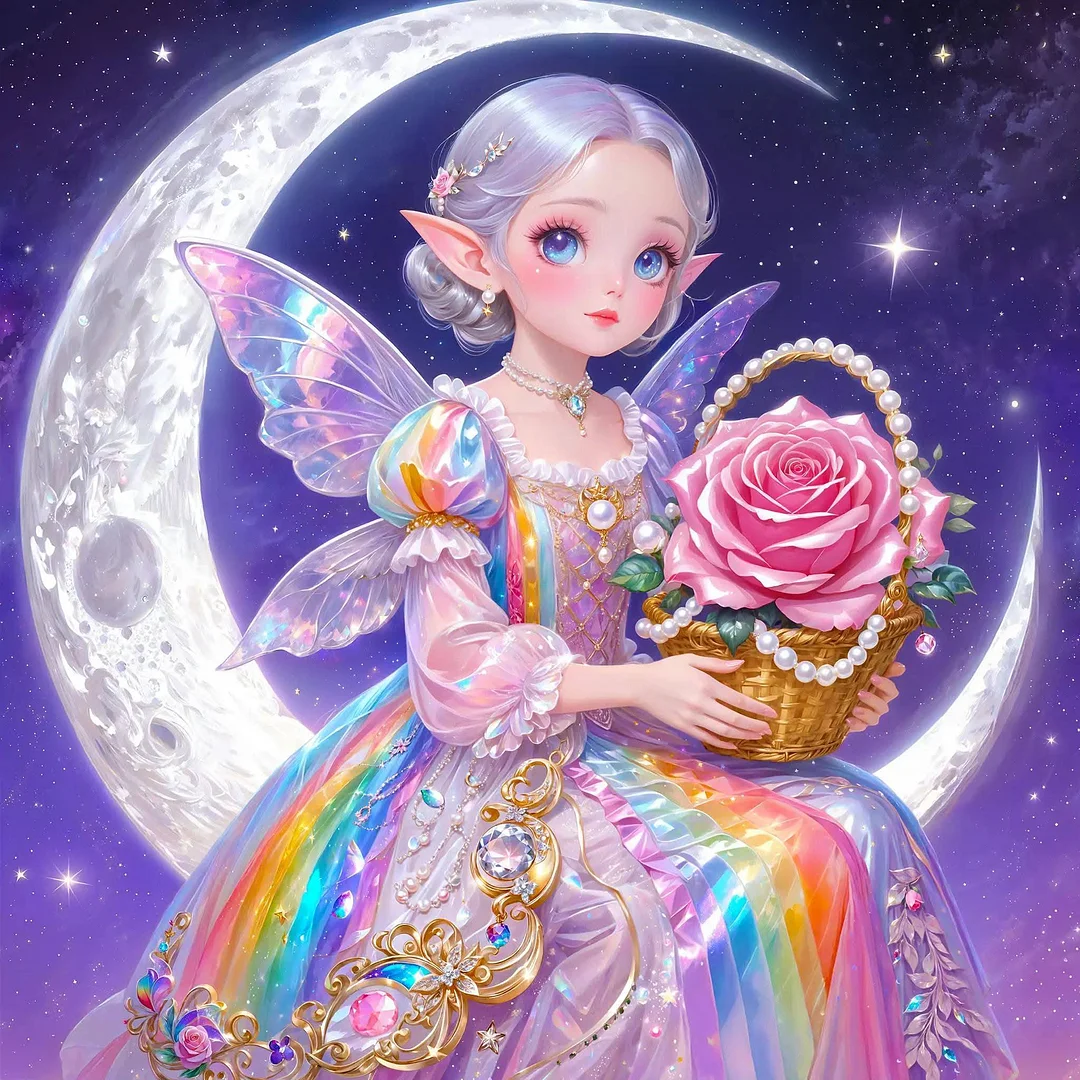 5D Diamond Painting Moon Girl (Velvet Cloth) Fairy Dust Drills Full Round&Square Wall DIY Art Crafts Mosaic Picture Kit Home Decoration Gift