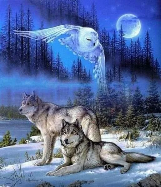 Moon Wolf (velvet cloth) AB drill full round/square diamond painting
