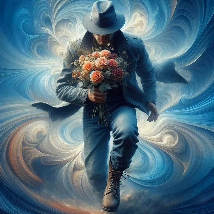 5D Diamond Painting Mysterious Man Giving Flowers (Velvet Cloth) Fairy Dust Drills Full Round&Square Wall DIY Art Crafts Mosaic Picture Kit Home Decoration Gift