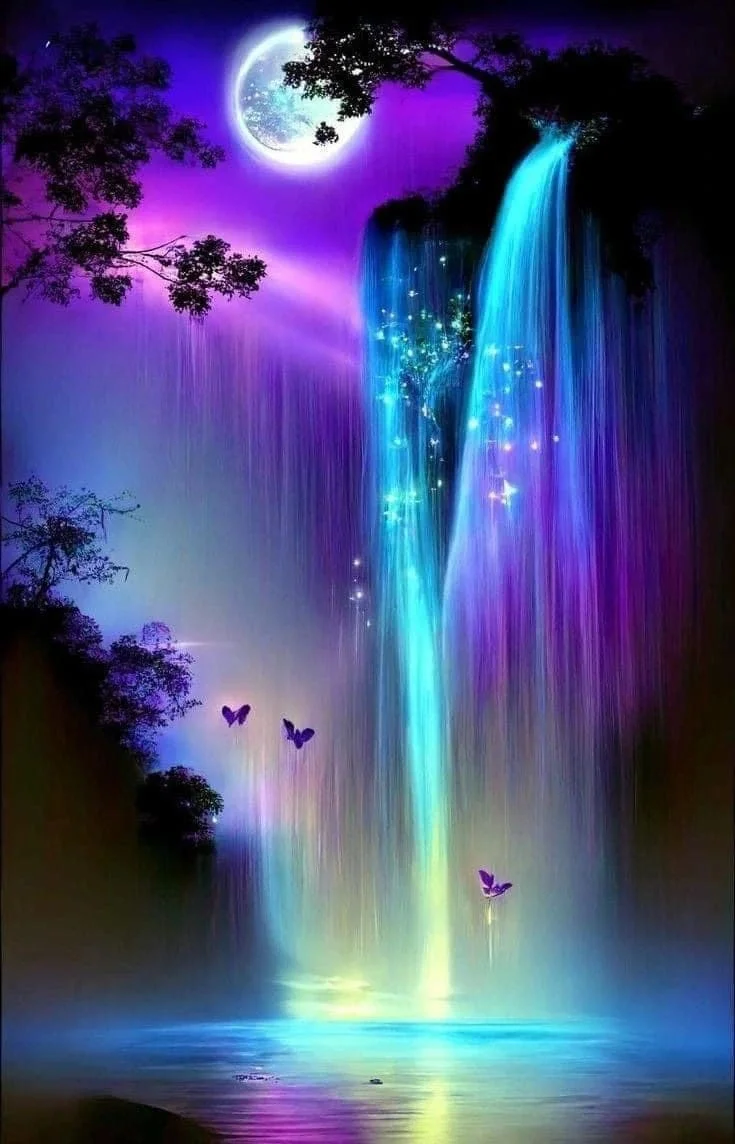 5D Diamond Painting Purple Waterfall Scenery (Velvet Cloth) AB Drill Full Round&Square Wall Rhinestone DIY Art Crafts Mosaic Picture Kit Home Decoration Gift