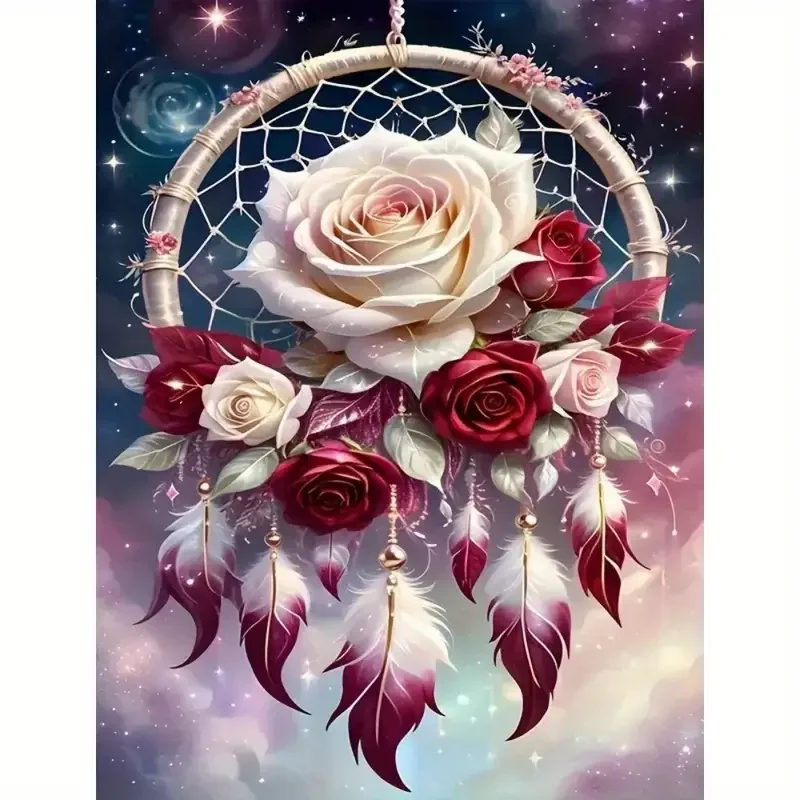 5D Diamond Painting Rose Dream Catcher (Velvet Cloth) Fairy Dust Drills Full Round&Square Wall DIY Art Crafts Mosaic Picture Kit Home Decoration Gift