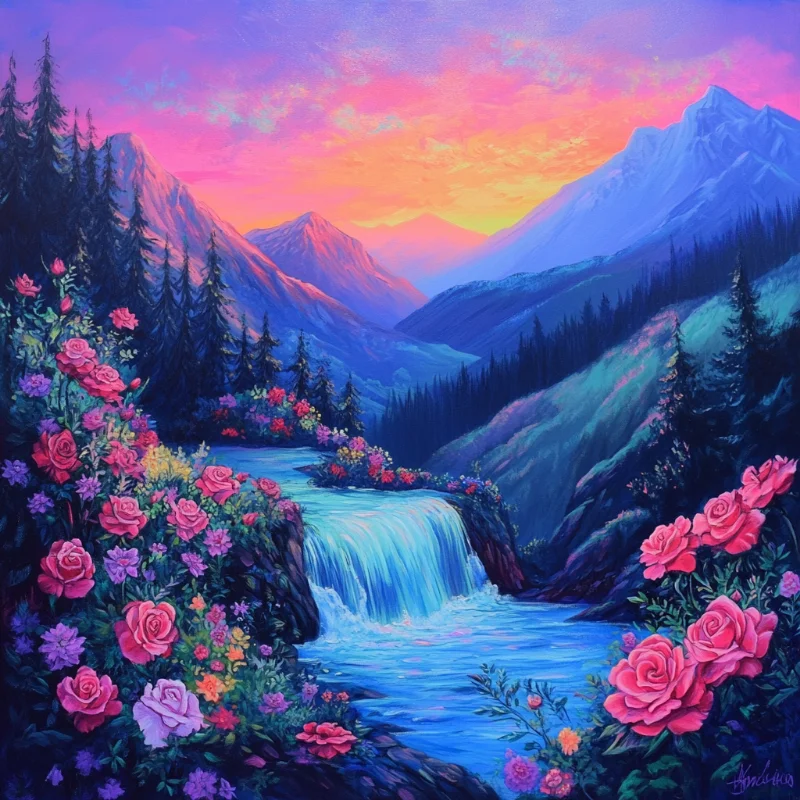 5D Diamond Painting Rose Waterfall Scenery (Velvet Cloth) AB Drill Full Round&Square Wall Rhinestone DIY Art Crafts Mosaic Picture Kit Home Decoration Gift