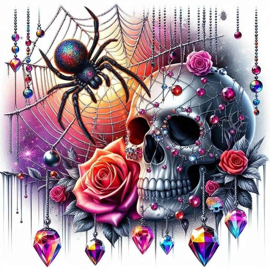 5D Diamond Painting Skull Spider Rose (Velvet Cloth) Fairy Dust Drills Full Round&Square Wall DIY Art Crafts Mosaic Picture Kit Home Decoration Gift