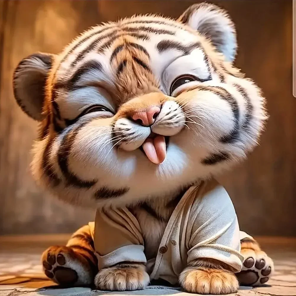 5D Diamond Painting Small Cute Tiger (Velvet Cloth) Fairy Dust Drills Full Round&Square Wall DIY Art Crafts Mosaic Picture Kit Home Decoration Gift