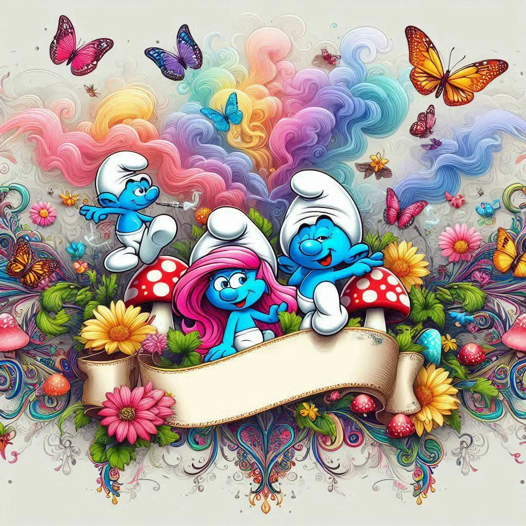 5D Diamond Painting Smurfs (Velvet Cloth) Fairy Dust Drills Full Round&Square Wall DIY Art Crafts Mosaic Picture Kit Home Decoration Gift