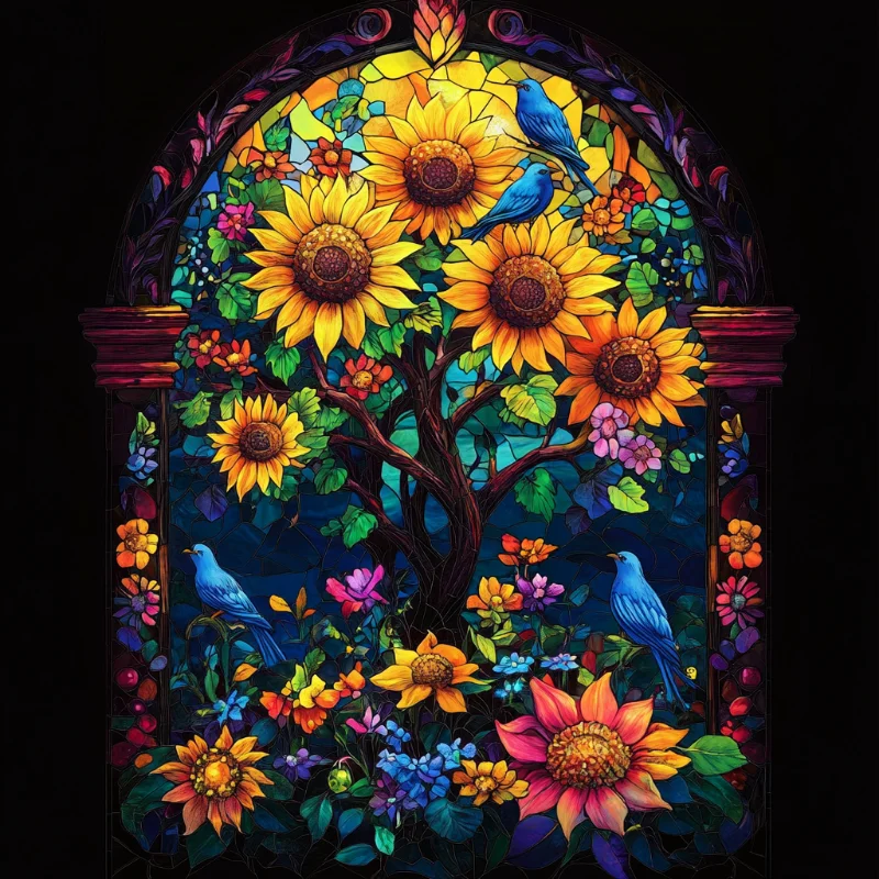 5D Diamond Painting Sunflower and Bird Full Round&Square Drill Wall Rhinestone DIY Art Crafts Mosaic Picture Kit Home Decoration Gift