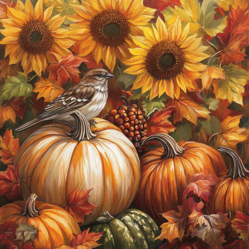 5D Diamond Painting Sunflower Pumpkin Bird (Velvet Cloth) Fairy Dust Drills Full Round&Square Wall DIY Art Crafts Mosaic Picture Kit Home Decoration Gift