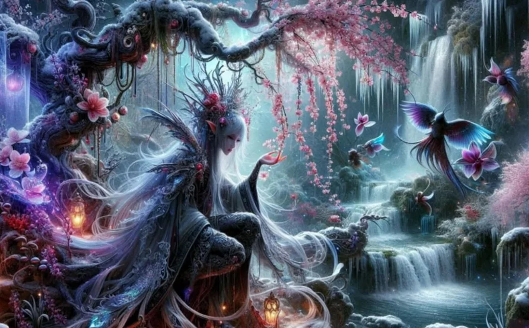 5D Diamond Painting The Elves in the Waterfall Landscape (Velvet Cloth) AB Drill Full Round&Square Wall Rhinestone DIY Art Crafts Mosaic Picture Kit Home Decoration Gift