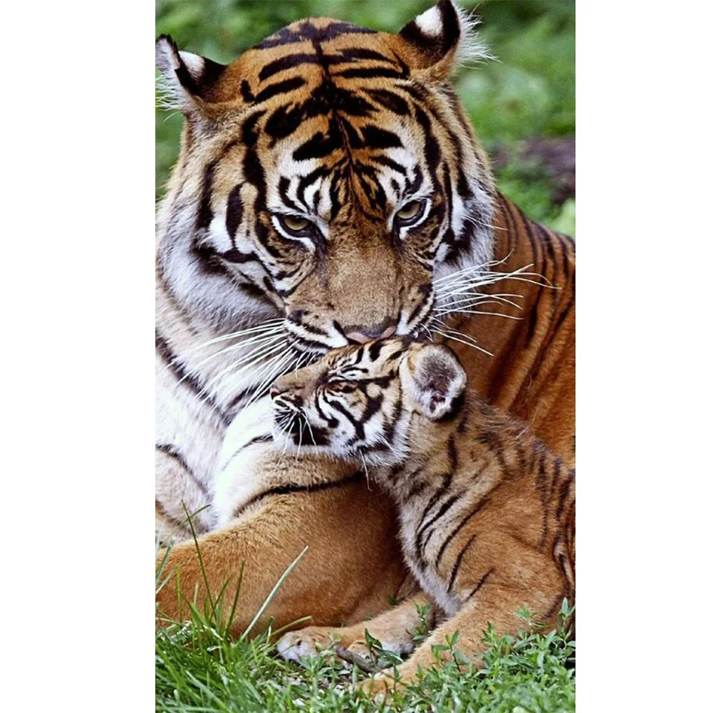 5D Diamond Painting Tiger and Cub Full Round&Square Drill Wall Rhinestone DIY Art Crafts Mosaic Picture Kit Home Decoration Gift