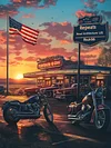 Diamond Painting US 66 Motorcycle Full Round&Square Drill Wall Rhinestone DIY Art Crafts Mosaic Picture Kit Home Decoration Gift