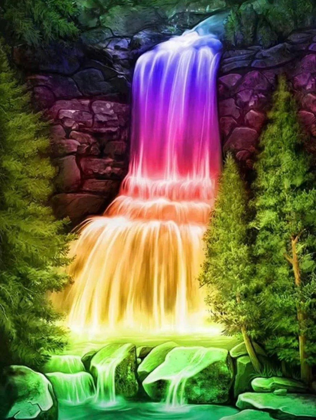5D Diamond Painting Waterfall Landscape (Velvet Cloth) Fairy Dust Drills Full Round&Square Wall DIY Art Crafts Mosaic Picture Kit Home Decoration Gift