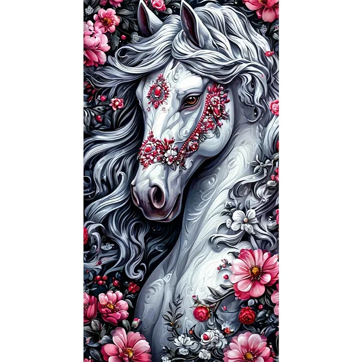 5D Diamond Painting White Horse (Velvet Cloth) AB Drill Full Round&Square Wall Rhinestone DIY Art Crafts Mosaic Picture Kit Home Decoration Gift