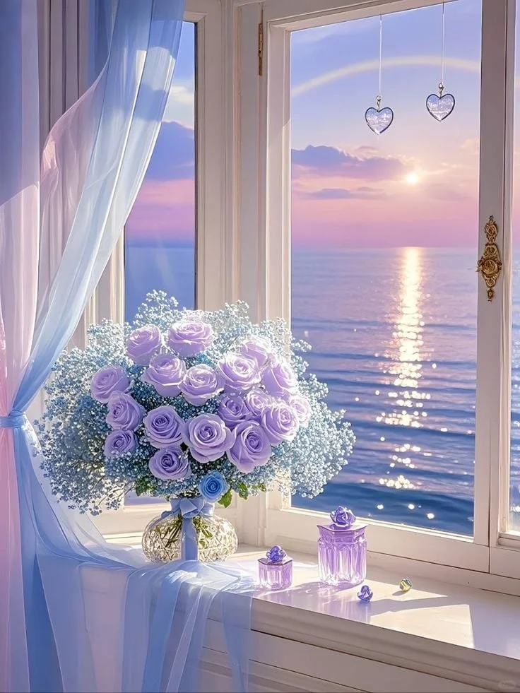 Diamond Painting Window Sill Rose and Sea Scenery Full Round&Square Drill Wall Rhinestone DIY Art Crafts Mosaic Picture Kit Home Decoration Gift