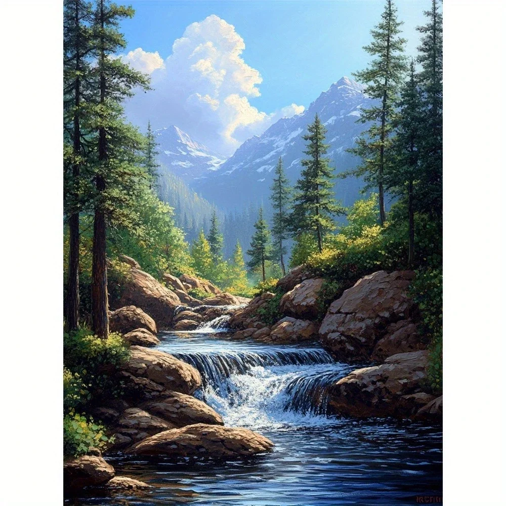 5D Diamond Painting Woods River Scenery (Velvet Cloth) AB Drill Full Round&Square Wall Rhinestone DIY Art Crafts Mosaic Picture Kit Home Decoration Gift