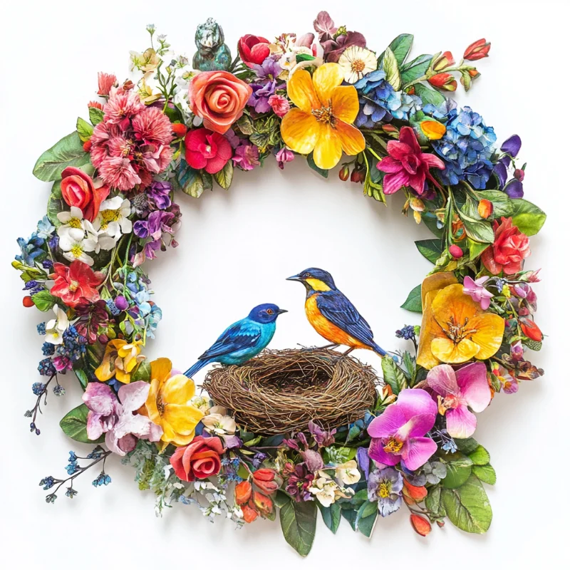 5D Diamond Painting Wreath Bird (Velvet Cloth) Fairy Dust Drills Full Round&Square Wall DIY Art Crafts Mosaic Picture Kit Home Decoration Gift